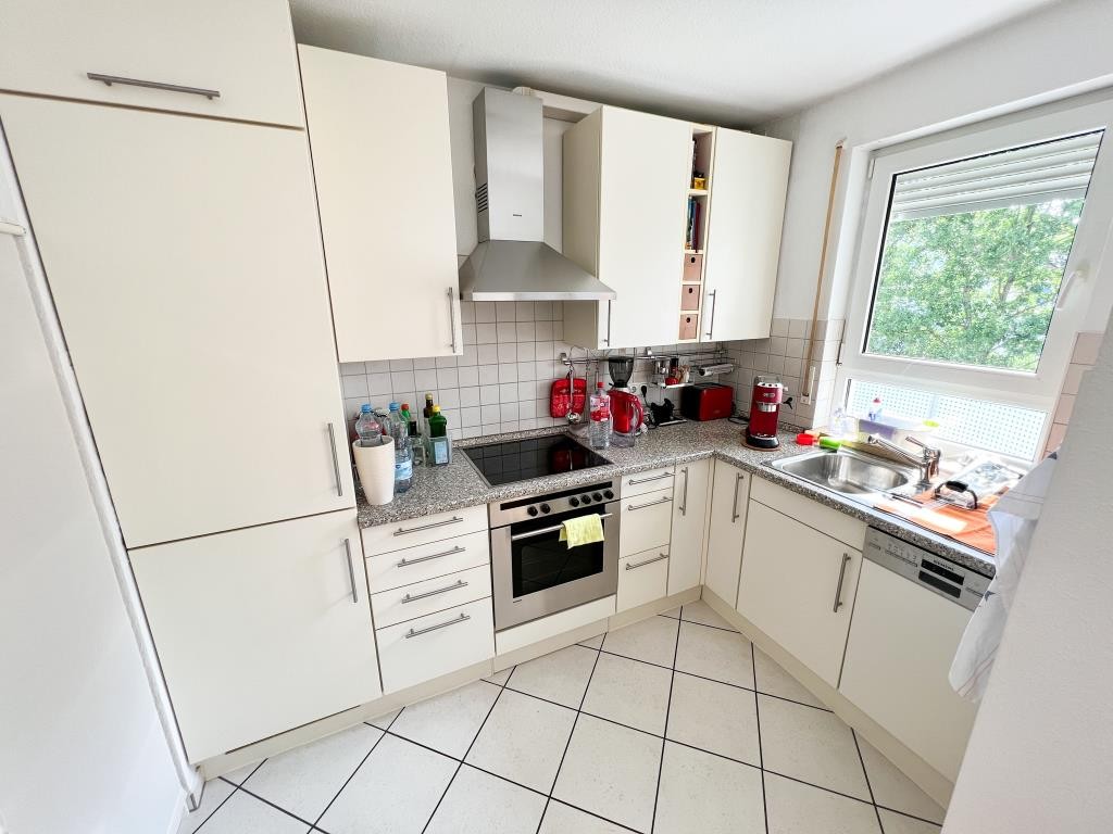Die Wohnung ist mit einer funktional gestalteten Einbauküche ausgestattet und das helle Badezimmer verfügt über eine Badwanne.
