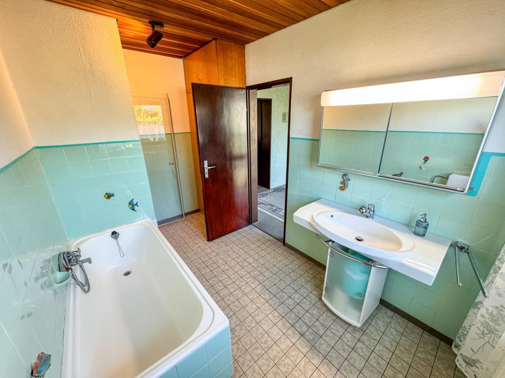 Das Obergeschoss verfügt über drei gut geschnittene Schlafzimmer, ein Tageslichtbad mit Wanne und Dusche sowie einen Balkon, der vom Elternschlafzimmer aus zugänglich ist – ideal für die ersten Sonnenstrahlen des Tages.