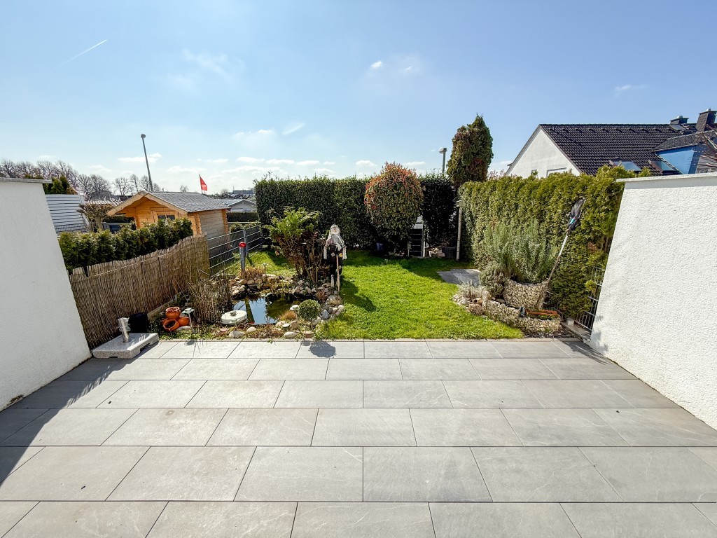 Der Raum erstrahlt in Helligkeit und bietet dank großer Fensterfronten einen herrlichen Blick in den liebevoll gestalteten und gepflegten Garten mit kleinem Teich! Eine Terrasse mit elektrischer Markise lädt zu gemütlichen Stunden im Freien ein.