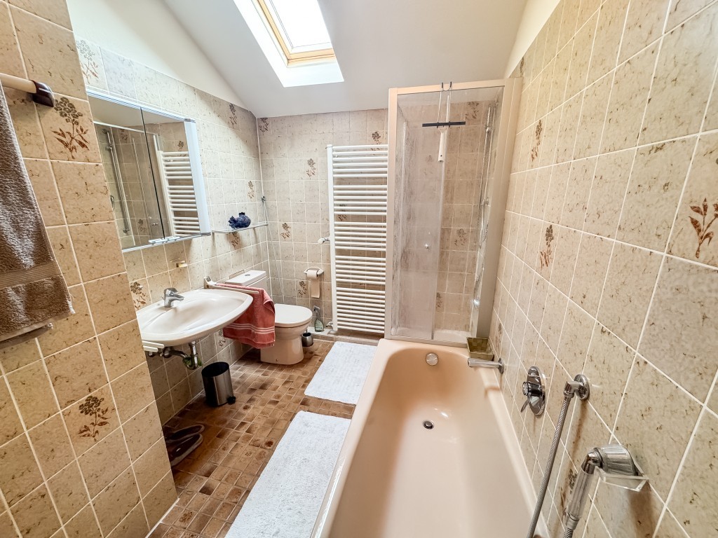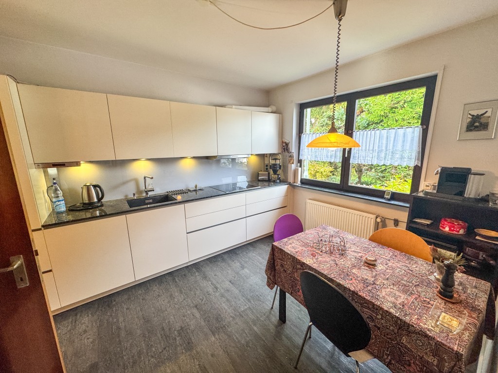 Das Haus verfügt über insgesamt fünf Schlafzimmer, zwei Bäder, ein großzügiges Wohnzimmer, ein Gäste-WC sowie eine freundliche, moderne Küche, die mit einer neuwertigen Einbauküche ausgestattet ist. Die Räume sind funktional geschnitten und bieten eine angenehme Wohnatmosphäre mit vielfältigen Nutzungsmöglichkeiten. Im Untergeschoss befinden sich vier separate Räume, die zusätzlichen Stauraum oder Platz für Hobbys und Fitness bieten.